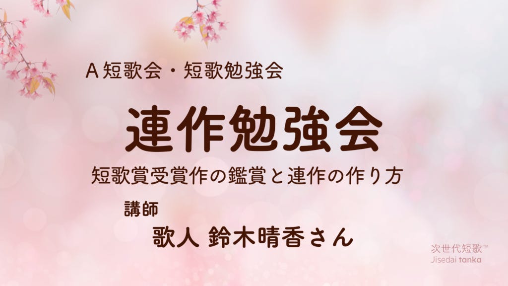 鈴木晴香クラス「連作勉強会—短歌賞受賞作の鑑賞と連作の作り方」